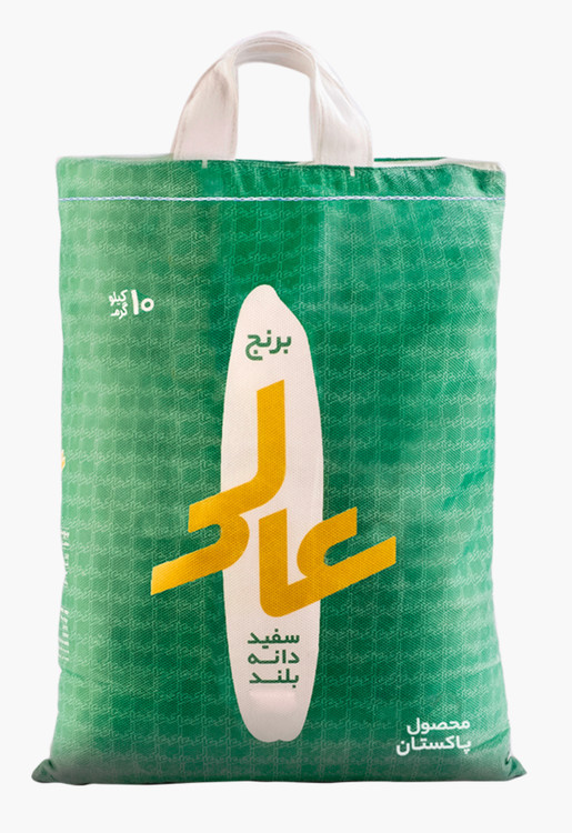 برنج پاکستانی سفید عالی از بهترین شاليزارهاى ایالت پنجاب پاکستان تهیه میشود و در كارخانه هاى تمام اتوماتيك فرآورى، سورت و در كيسه هاى 10 کیلویی سبز رنگ با برند “عالى” بستهبندى شده و عرضه مىگردد.