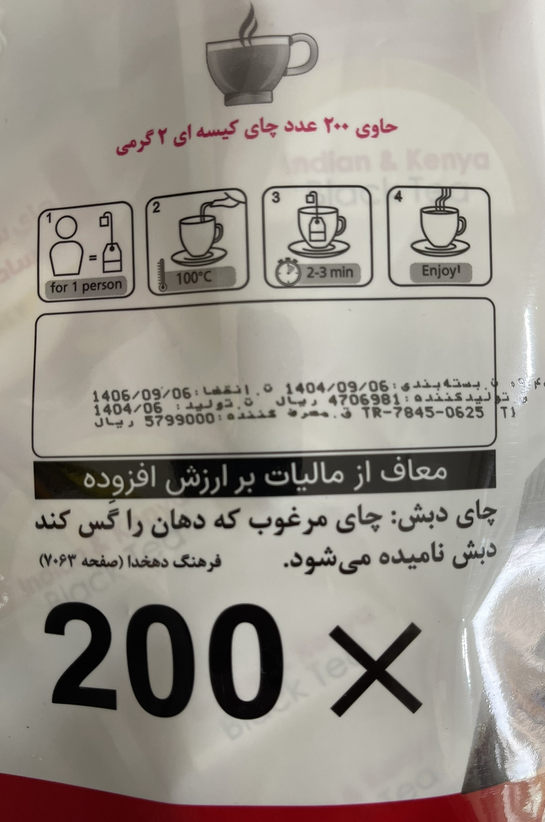 چای کیسه ای ۲۰۰ عددی تی بگ
